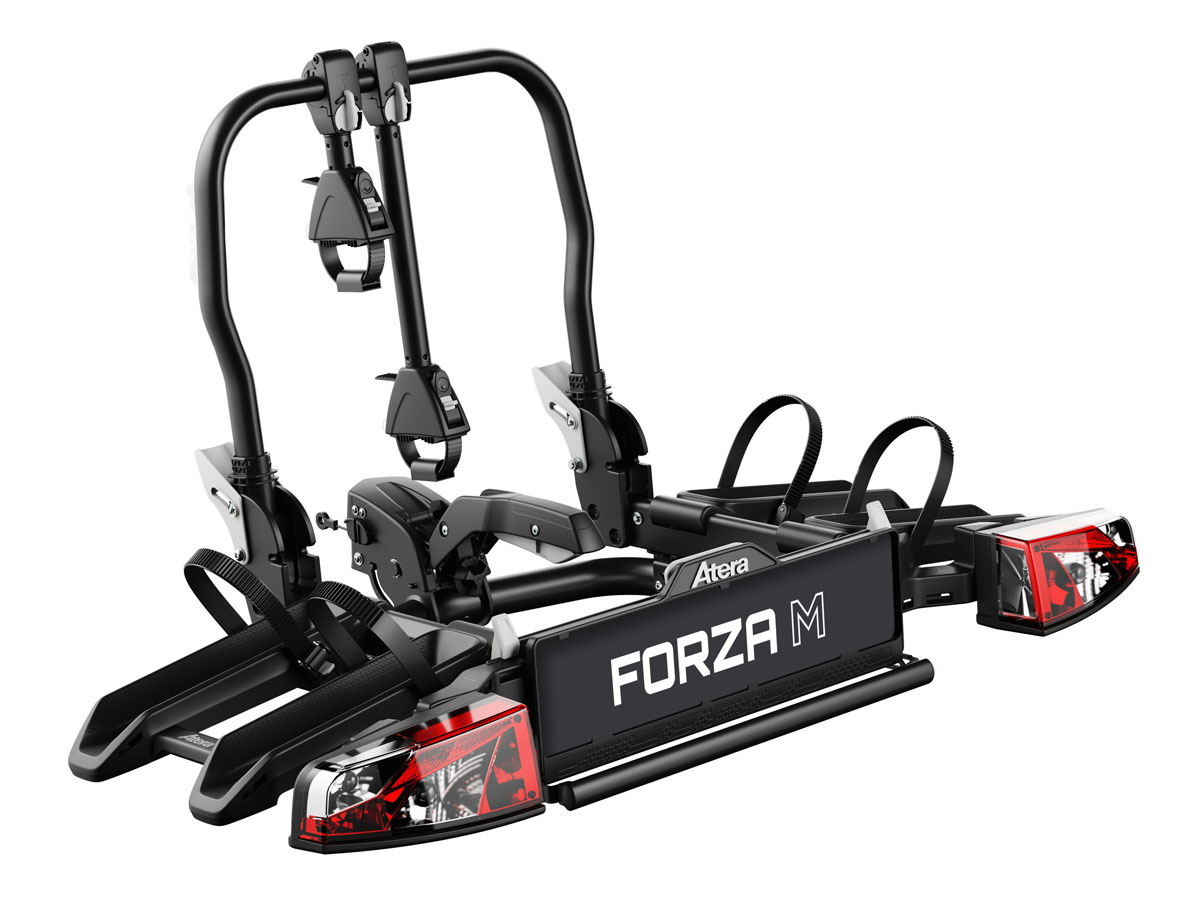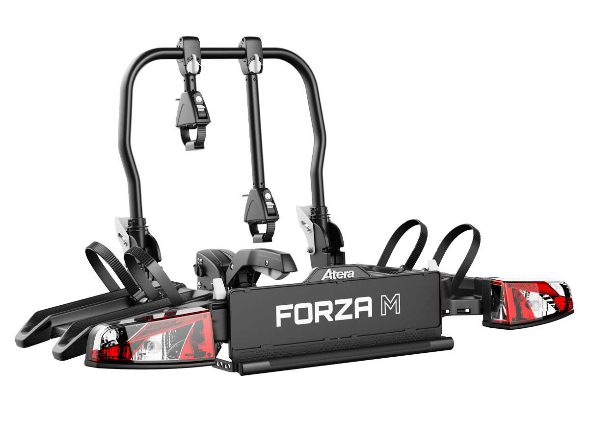 Německý výrobce Atera přichází na trh s novým modelem nosiče kol na tažné zařízení Atera Forza. Vyladěný, skládací, designově dokonalý nosič je zkonstruován tak, aby byl vhodný téměř pro jakékoli kolo. Maximální hmotnost kola je 30 kg, pro maximální rozvor 135 cm a pláště do 4,0 palců. Pozice pro kola jsou od sebe vzdálené 21 cm, což je ideální rozměr pro elektrokola. Velkou výhodou je skládací konstrukce nosiče, díky které jej můžete složit do menších rozměrů, čímž bude nosič snáze přepravovatelný a uskladnitelný. U aut i s velkými zadními dveřmi oceníte nastavitelnou sklopnou funkci. Při sklopení nosiče otevřete zadní dveře například i u aut jako VW Transporter. K nosiči je možné dokoupit rozšiřující adaptér 022802 pro 3. kolo. Atera Forza je nosič kol, který má vše, co od nosiče kol potřebujete.