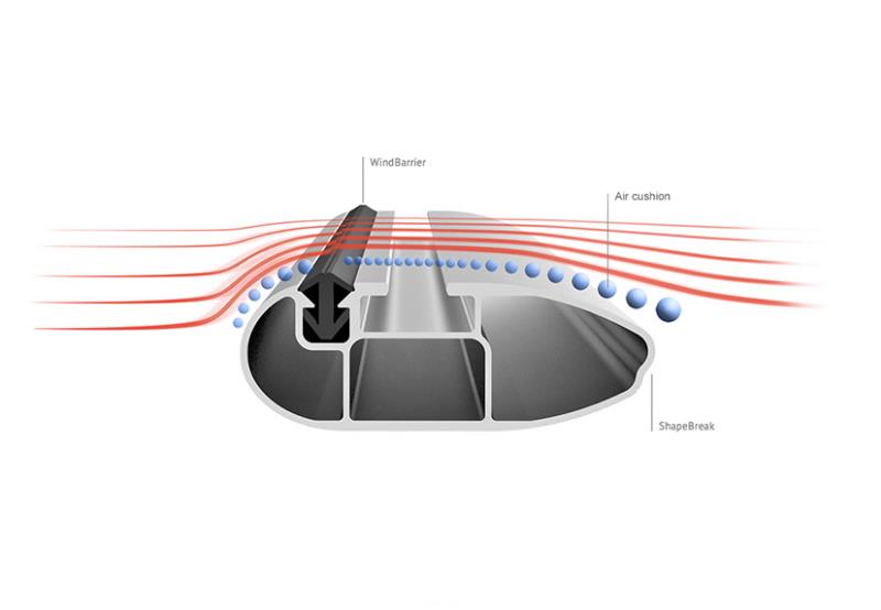 - Atera Aero Profil prináša aerodynamickú dokonalosť. Tyč v tvare krídla a na zadnej zostupnej strane so špeciálne spracovanou hranou ShapeBreak, ktorá riadi prúdenie vzduchu dokonalým spôsobom, zabezpečia vynikajúcu aerodynamiku a tým minimalizujú nepríjemný hluk.