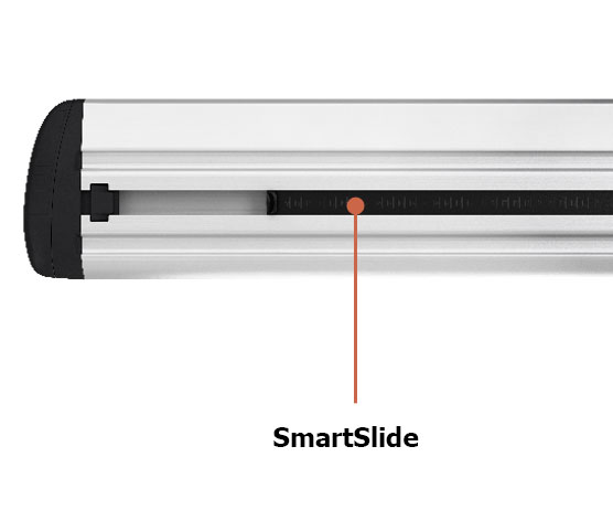 SmartSlides - je posuvná stupnice, která je zároveň aerodynamickým krytem drážky na spodní straně tyčí a umožňuje přesné nastavení potřebné vzdálenosti při sestavování nosiče.
